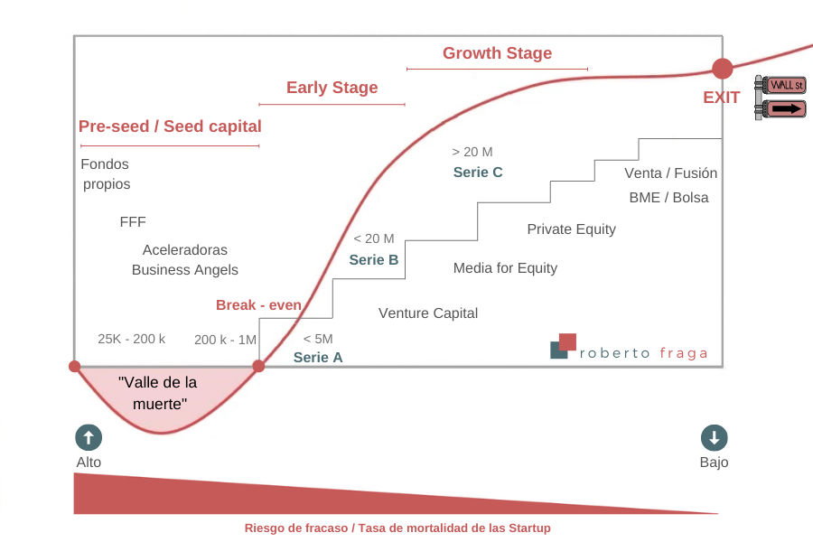 Como habrás podido observar, el ciclo de crecimiento y financiación de una Startup es largo y requiere de una capacidad estratégica importante para llevarlo a cabo, por lo que es importante interiorizar que hay un riesgo real de que las cosas no salgan como lo habíamos planteado y eso no será sinónimo de fracaso, si no que deberíamos obtener una valiosa lección de todo lo aprendido por el camino y, sobre todo, ser capaces de disfrutar del proceso.